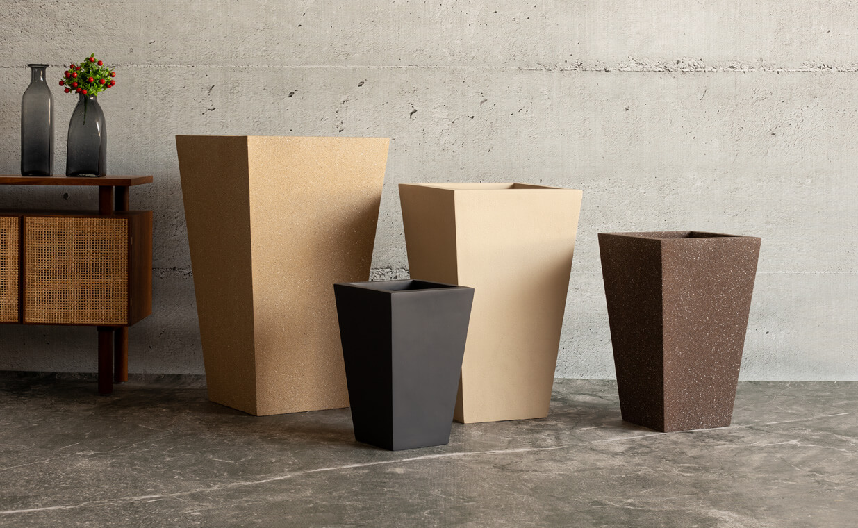 Minelo features trapeziums forming squares at the top & bottom. Its distinctive sharp edges & crisp corners make a statement. Minelo is a great planter to position at patio or entryways. With the wide range of sizes, Minelo can host everything from a shrub to full sized trees!
